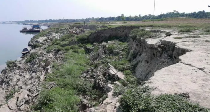 কুষ্টিয়ার দৌলতপুরে অসময়ে পদ্মা নদীর ভাঙনে দিশেহারা হয়ে পড়েছেন প্রায় অর্ধলক্ষ মানুষ। প্রতিদিনই নদীগর্ভে বিলিন হচ্ছে শত শত বিঘা ফসলি জমি ও বসতভিটা। দুশ্চিন্তা ও আতঙ্কে দিন দিন কাটছে তাদের। ভূক্তভোগীদের দাবী পদ্মার ভাঙন রোধে স্থায়ী বাঁধ নির্মাণের। দৌলতপুর উপজেলার পদ্মা নদীর কোল ঘেষা মরিচা ইউনিয়ন। কৃষি নির্ভর এই ইউনিয়নের প্রায় অর্ধলক্ষ মানুষের দিন কাটছে পদ্মার ভাঙন আতঙ্কে। দীর্ঘদিন ধরে পদ্মা নদীর আগ্রাসনের ফলে মানচিত্র থেকে বিলীর হওয়ার পথে এই ইউনিয়নটির চিত্র। অসময়ে অর্থাৎ শুষ্ক মৌসুমেও ৪ কি. মি. এলাকা জুড়ে নদী ভাঙন শুরু হওয়ায় প্রতিদিনই নদী গর্ভে বিলীন হচ্ছে শত শত বিঘা ফসলি জমি ও বসতভিটা। ইতিমধ্যে নদী গর্ভে বিলীন হয়েছে হাজার হাজার বিঘা আবাদি জমি, ঘর-বাড়ি ও বিভিন্ন স্থাপনা। তাই শেষ সম্বলটুকু হারানোর ভয় ও আতঙ্ক এখন তাদের নিত্য সঙ্গী। তবে ভাঙন রোধে হাটখোলাপাড়া থেকে ভূরকা পর্যন্ত ১ কিলোমিটার এলাকাজুড়ে বালুভর্তি জিওব্যাগ ফেলার কাজ শুরু করেছে পানি উন্নয়ন বোর্ড (পাউবো)। দুটি প্রকল্পের আওতায় ২০ কোটি টাকা ব্যয়ে ২ লাখ ৩৫ হাজার জিওব্যাগ ফেলা হবে বলে জানিয়েছেন কুষ্টিয়া পানি উন্নয়ন বোর্ডের উপ-বিভাগীয় প্রকৌশলী রোকনুজ্জামান। এদিকে এলাকাবাসী বলছেন, কিছুদিনের মধ্যে নদীতে নতুন পানি এলে পদ্মার আগ্রাসী রূপ আরও বেড়ে যাবে। এক কিলোমিটার অংশের ভাঙন রোধের উদ্যোগে তারা খুশি হলেও উদ্বেগ ও উৎকণ্ঠায় রয়েছেন বাঁকী ৩ কিলোমিটার এলাকাজুড়ে ভাঙন নিয়ে। তাদের দাবি, পুরো এলাকাতে সাময়িকভাবে ভাঙন রোধে জিওব্যাগ ফেলার পাশাপাশি দ্রুত স্থায়ী বাঁধ নির্মাণ করা হোক। স্থানীয় বাসিন্দাদের সঙ্গে কথা হলে তারা জানান, কয়েক বছর ধরে চলা ভাঙনে নদীগর্ভে হারিয়ে গেছে তাদের কয়েক হাজার বিঘা আবাদি জমি, বসতবাড়ি, কয়েকটি সরকারি- বেসরকারি স্থাপনা ও শিক্ষাপ্রতিষ্ঠান। ঝুঁকিতে রয়েছে নদীর পাড় থেকে মাত্র ৩০ মিটার দূরে থাকা বন্যানিয়ন্ত্রণ বাঁধ, ভারত থেকে আসা বিদ্যুৎ সঞ্চালন লাইন, শিক্ষাপ্রতিষ্ঠান এবং সরকারি-বেসরকারি স্থাপনা ও অসংখ্য বসত বাড়ি। পদ্মা পাড়ের বাসিন্দা সিদ্দিকুর রহমান জানান, একসময় তাদের বাড়ি থেকে আবাদি জমিতে যেতে হাঁটতে হতো ৫ কিলোমিটার। এখন নদীর পাড়ে আসতে সময় লাগে মাত্র দুই মিনিটের কম সময়। চোখের সামনে পদ্মার আগ্রাসী ভাঙনে হারিয়েছেন চাষের জমি। ভাঙন রোধে দ্রুত টেকসই ব্যবস্থা না নিলে বসতভিটাও হারাতে হবে বলে শঙ্কা প্রকাশ করেন তিনি। সিরাজ মন্ডল নামে স্থানীয় বাসিন্দা বলেন, আমাদের এলাকার ৪ কিলোমিটার এলাকা জুড়ে পদ্মা নদীর ভাঙন দেখা দিয়েছে। এর মধ্যে এক কিলোমিটার এলাকায় জিওব্যাগ ফেলা হচ্ছে। বাকি ৩ কিলোমিটারে এখনই ব্যবস্থা না নিলে