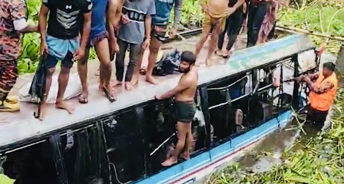 কুষ্টিয়ার খোকসা উপজেলার শিমুলিয়া ইউনিয়নের পাইকপাড়া-মির্জাপুর ব্র্যাক অফিস সংলগ্ন এলাকায় গতকাল (৩১ মে) শনিবার সকাল আনুমানিক ৯টার দিকে একটি ট্রাক ও লোকাল বাস ‘প্রভাতী ডিলাক্স’-এর মুখোমুখি সংঘর্ষে অন্তত ৩০ জন আহত হয়েছেন। দুর্ঘটনার পরে বাসটি পাশের জলে ডুবে গেলে হতাহত যাত্রীরা ছাদে উঠে প্রাণ রক্ষা করেন। স্থানীয় প্রত্যক্ষদর্শীদের বরাতে জানা যায়, খুলনা মেট্রো ড-১১-০১৮০ নম্বরের একটি ট্রাক ও প্রভাতী ডিলাক্স বাসের তীব্র সংঘর্ষের ফলে যাত্রীদের মধ্যে হাহাকার ছড়িয়ে পড়ে। দুর্ঘটনার পরপরই বিক্ষুব্ধ জনতা সড়ক অবরোধ করে প্রায় এক ঘণ্টা। খবর পেয়ে খোকসা থানার অফিসার ইনচার্জ শেখ মঈনুল ইসলাম ঘটনাস্থলে পৌঁছে পরিবেশ শান্ত রাখার চেষ্টা করেন। পরে হাইওয়ে পুলিশ ও ফায়ার সার্ভিসের সদস্যরা এসে উদ্ধার তৎপরতা চালান। স্থানীয়রা তাৎক্ষণিক আহতদের উদ্ধার করে খোকসা উপজেলা স্বাস্থ্য কমপ্লেক্স, কুষ্টিয়া সদর হাসপাতাল এবং ফরিদপুর মেডিকেল কলেজ হাসপাতালে পাঠান। খোকসা হাসপাতালের চিকিৎসক ডা. আরিফুল ইসলাম জানান, তারা প্রায় ৩০ জন আহতকে চিকিৎসা প্রদান করেছেন এবং গুরুতরদের রেফার্ড করেছেন। ফায়ার সার্ভিস সূত্র জানায়, এক নারীর হাত বিচ্ছিন্ন হয়ে যায় এবং তার হাতে থাকা স্বর্ণালংকারসহ সেই কাটা হাত কুষ্টিয়ায় প্রেরণ করা হয়েছে। তবে এখন পর্যন্ত কোনো মৃত্যুর খবর পাওয়া যায়নি। এখনো হাসপাতালে চিকিৎসাধীন বেশ কয়েকজন যাত্রীর পরিচয় নিশ্চিত হওয়া যায়নি, তাদের স্বজনদের অনেকেই এখনো এসে পৌঁছাননি। দুর্ঘটনার স্থানটি ঘিরে এখনো শত শত মানুষের ভিড় লক্ষ্য করা গেছে, অনেকে প্রিয়জনের সন্ধানে ব্যাকুল।