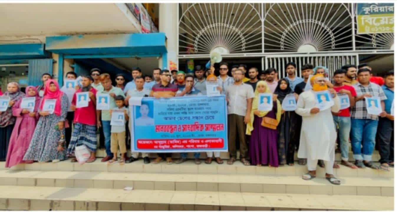 রাজবাড়ীর পাংশায় স্কুলছাত্র আব্দুল্লাহ ওরফে তামিম (১৪) নিখোঁজ হওয়ার ১৫ দিন পার হলেও মেলেনি তার সন্ধান। নিখোঁজ স্কুলছাত্রের সন্ধান চেয়ে মানববন্ধন ও সংবাদ সম্মেলন করেছে পরিবার ও এলাকাবাসী।