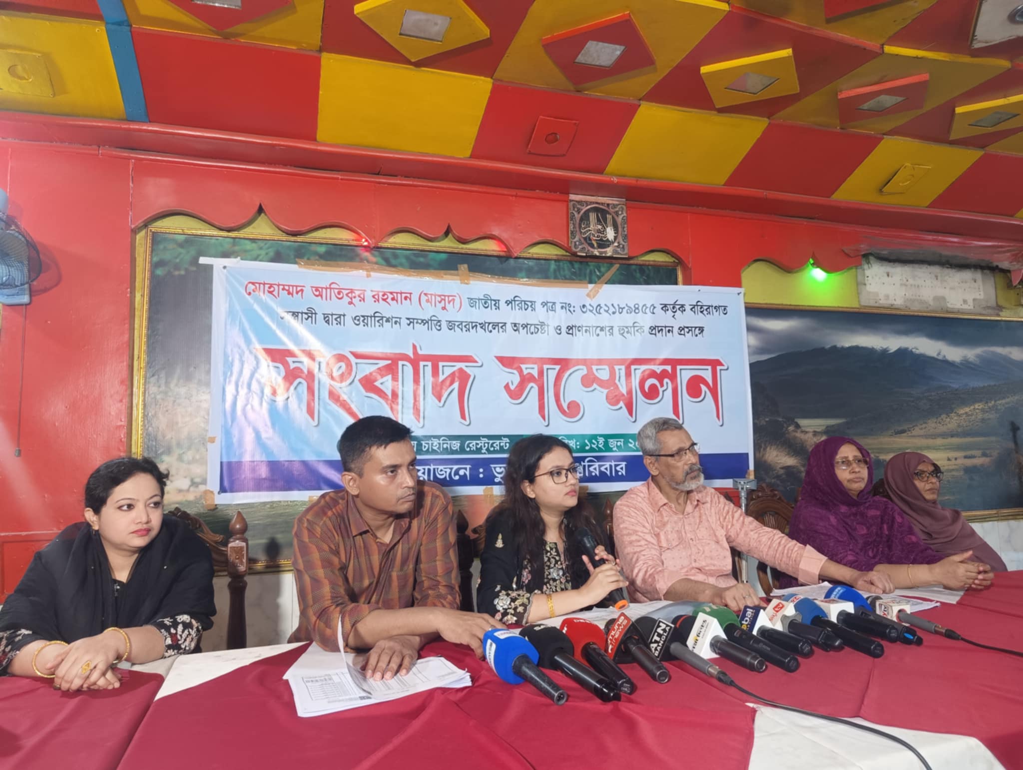সংবাদ সম্মেলনে জাহানারা চৌধুরী আরো জানান, প্রায় ৩৬ কাঠা জমির মধ্যে ৩.১৩৭৫ কাঠা এ্যাজমালী রেখে বাকি জমি ওয়ারিশগণের মধ্যে বিভাজিত হয়। কিন্তু ২০২২ সালের অক্টোবর মাসে ওয়ারিশগণ এ্যাজমালী অংশ থেকে ১০.৪২ কাঠা জমির নাম খারিজ করে নেন। বিষয়টি জানতে পেরে ২০২৩ সালে তারা এসিল্যান্ড কার্যালয়ে আবেদন করে খারিজ বাতিলের দাবি জানান। কিন্তু উল্টো বিবাদী পক্ষ খারিজ বহাল রাখার জন্য জেলা জজ আদালতের যুগ্ম আদালতে মামলা দায়ের করে, যার রায় আসে বাদীপক্ষের (জাহানারাদের) অনুকূলে। জাহানারা আরও অভিযোগ করেন, আতিকুর রহমান মাসুদ আংশিক জমি ক্রয় করেও সম্পূর্ণ জমি আত্মসাৎ করার চেষ্টা করছেন। তিনি মিউটেশন সূত্রে জমি কিনেছেন, ওয়ারিশ সূত্রে নয়। এই বণ্টন মামলা চলাকালীন তিনি জমি কিনেছেন যা সম্পূর্ণ আইন পরিপন্থী ।