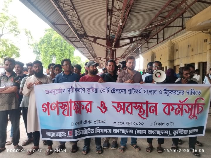 দেশের অন্যতম প্রাচীন কুষ্টিয়া কোর্ট ষ্টেশনের জনদূর্ভোগ চরমে পৌঁছেছে। এই সমস্যা দূরীকরণে কোর্ট ষ্টেশনের প্লাটফর্ম সংস্কার ও উঁচুকরনের দাবিতে গণস্বাক্ষর ও অবস্থান কর্মসূচি অনুষ্ঠিত হয়েছে।