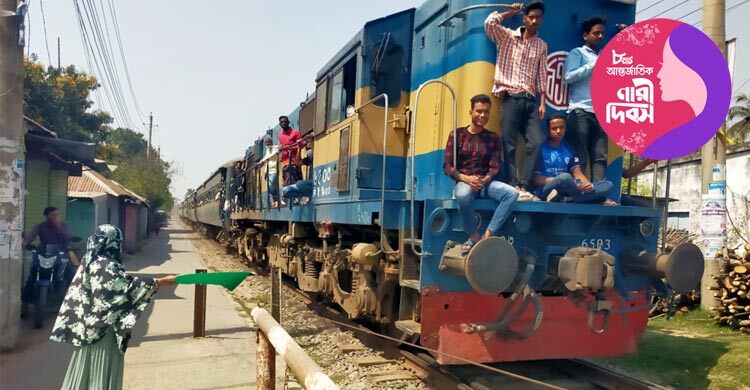 ফোনে রিংটন বাজতেই এদিক-সেদিক উঁকিঝুঁকি। হ্যান্ডেল ঘুরিয়ে ঘুরিয়ে নামালেন রেললাইনের ভারী লোহার গেট। গেটের দু’পাশে অপেক্ষায় পথচারীরা। এরপর ডানহাতে সবুজ পতাকা শক্ত করে ধরে সোজা দাঁড়িয়ে থাকলেন। মুহূর্তে একটি ট্রেন চলে গেলো। এরপর হ্যান্ডেল ঘুরিয়ে ফের গেট তুলে দিলেন গেটম্যান লতিফা ইসলাম লতা (৩৪)।