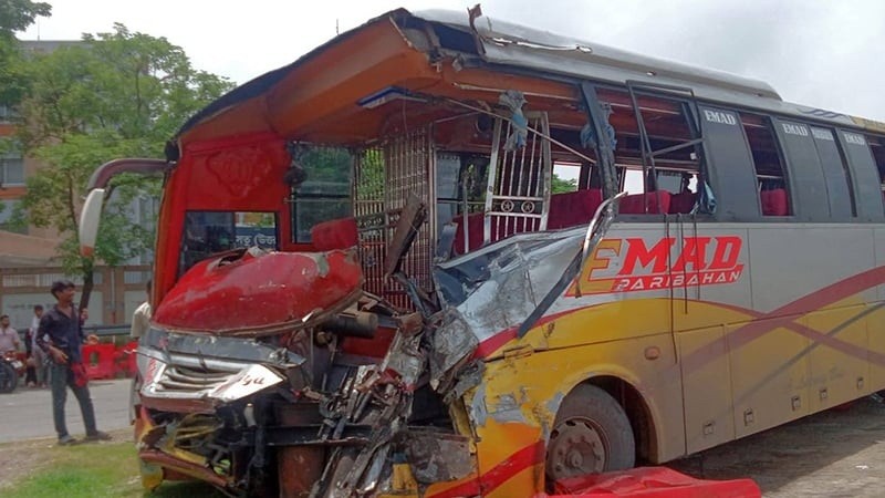 এতে নিয়ন্ত্রণ হারিয়ে ইলিশ পরিবহনের বাস, গোসাইরহাট এক্সপ্রেস বাস, একটি প্রাইভেটকার ও একটি জিপ গাড়ির সঙ্গে সংঘর্ষ হয় ইমাদ পরিবহনের বাসটির। এ সময় ১৫ জন আহত হয়।
