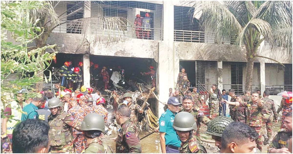 গত সোমবার মাইলস্টোন স্কুল অ্যান্ড কলেজে বিমান বাহিনীর প্রশিক্ষণ যুদ্ধবিমান বিধ্বস্ত হয়ে অন্তত ৩৩ জনের মৃত্যু হয়েছে। আহত হয়েছেন দেড় শতাধিক মানুষ, যাদের অনেকের অবস্থা এখনো আশঙ্কাজনক।