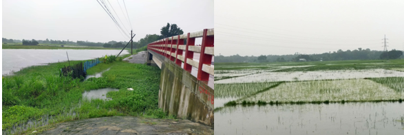 সরেজমিন গিয়ে দেখা যায়, গড়ের মাঠ সেতুর মুখে মাটি ও জাল দিয়ে বাঁধ দেওয়া। খালে জন্মেছে বড় বড় কচুরিপানা। কয়েক‘শ মিটার পর পর ছোট বড় কালভার্ট ও পাইপ কালভার্ট। খাল বন্ধ করে নির্মাণ করা হয়েছে বেশকিছু কাঁচা ও পাকা বাড়ি। খাল ভরা পানি থাকলেও প্রবাহ নেই। খালের দুইপাশে জমিতে আমন ধানের চারা পানিতে ডুবুডুবু করছে। ভেসে গেছে বেশকিছু মাছের পুকুরও। খাল দখল করে ঘরবাড়ি নির্মাণ ও মাছ চাষ করায় পানি প্রবাহ বন্ধ হয়ে ধান ডুবে গেছে। চারাগুলো পঁচে যাচ্ছে। চারা ডুবে পঁচে যাওয়ায় মাথায় হাত উঠেছে ধান চাষীদের।