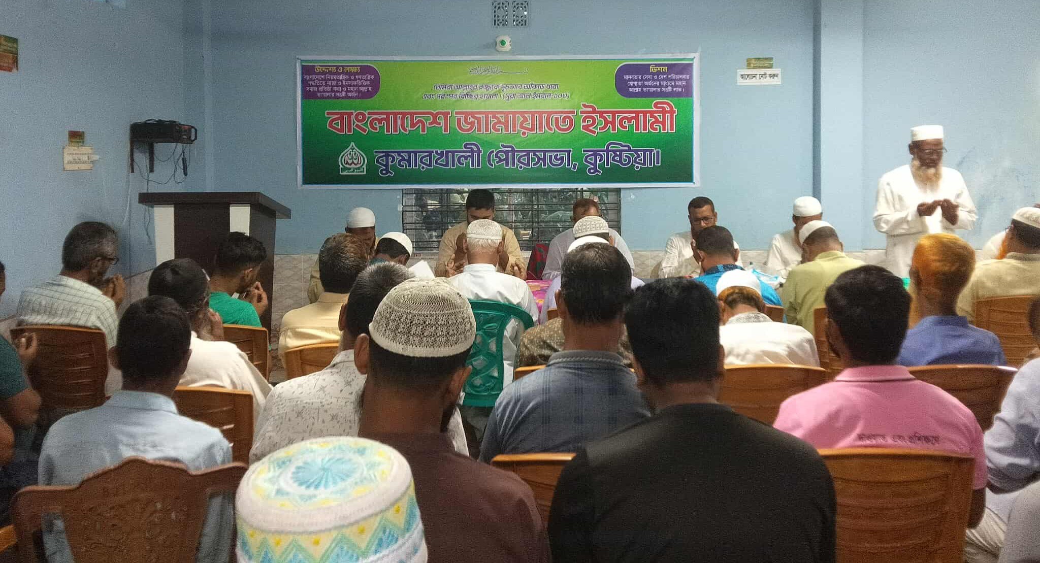 কুষ্টিয়ার কুমারখালীতে বাংলাদেশ জামায়াতে ইসলামীর আমীর ডাঃ শফিকুর রহমানের সুস্থতা কামনায় দোয়া মাহফিল অনুষ্ঠিত হয়েছে। ১লা আগস্ট শুক্রবার সকালে কুমারখালী শহরের আল-ফালাহ ইয়াতিমখানা মিলনায়তনে এ্ই দোয়া অনুষ্ঠানের আয়োজন করে জামায়াতে ইসলামীর কুমারখালী পৌরসভা শাখা।