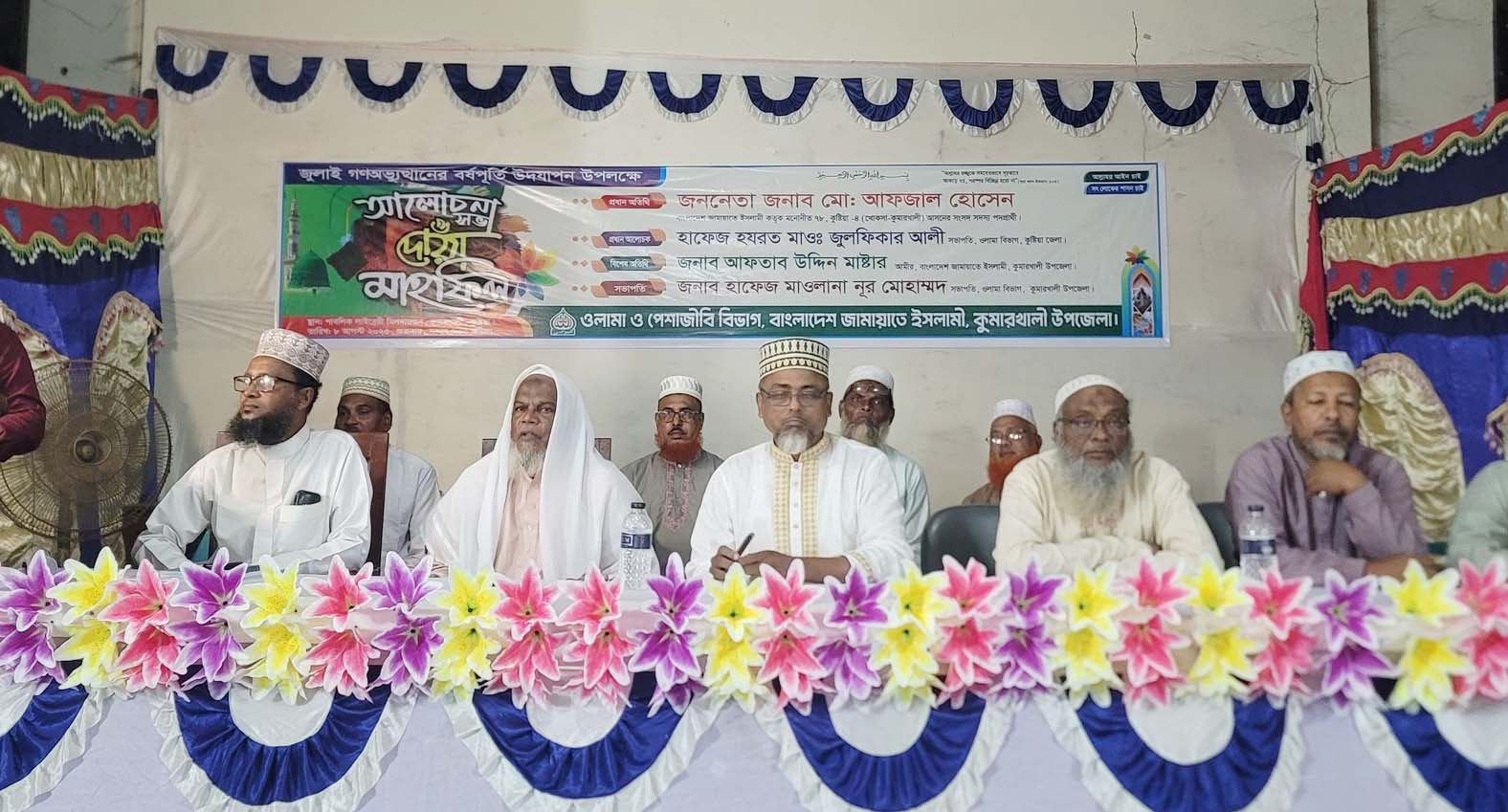 কুমারখালী উপজেলা ওলামা পরিষদের সভাপতি হাফেজ মাওলানা নুর মোহাম্মদের সভাপতিত্বে প্রধান অতিথি ছিলেন জামায়াতে ইসলামী মনোনীত এমপি প্রার্থী, সাবেক উপজেলা ভাইস চেয়ারম্যান মোহাম্মদ আফজাল হোসাইন।