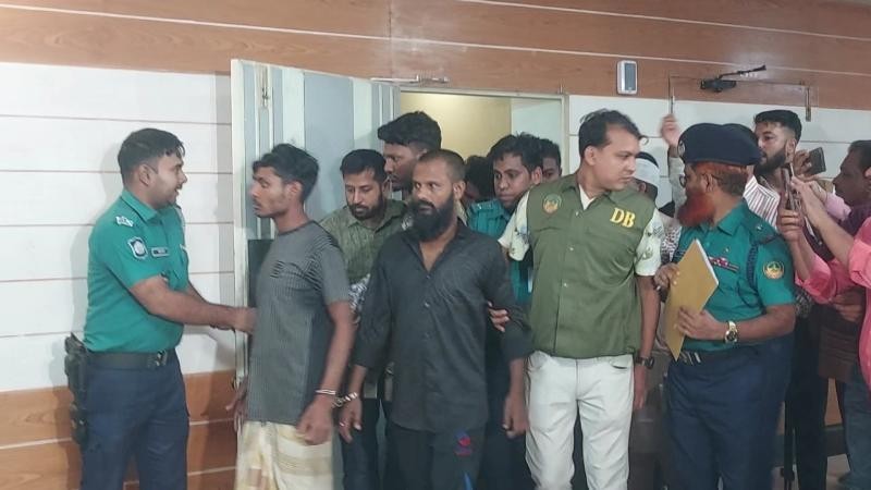 আদালতে আসামিদেরকে প্রিজনভ্যানে হাজির করা হয় এবং পুলিশের পক্ষ থেকে ১০ দিনের রিমান্ডের আবেদন করা হয়। বিচারক মো. আলমগীর আল মামুন শুনানি শেষে প্রত্যেকের দুদিনের রিমান্ড মঞ্জুর করেন এবং পুলিশি হেফাজতে নেওয়ার নির্দেশ দেন।
