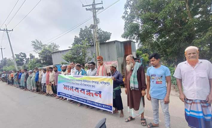 মঙ্গলবার ১২ই আগষ্ট সকাল ৮টায় উপজেলার কুষ্টিয়া-রাজবাড়ী মহাসড়কের মাঝে সৈয়দ মাসুদ রুমী সেতুর পূর্ব পাশে বাঁশআড়া মোড়ে এই মানববন্ধন অনুষ্ঠিত হয়।