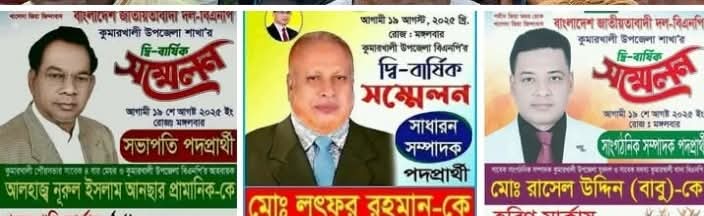 কুমারখালী উপজেলা বিএনপি’র দ্বি বার্ষিক সম্মেলনে ভোটের মাধ্যমে সভাপতি পদে আলহাজ্ব নুরুল ইসলাম আনছার প্রামানিক (৫৪৬), সাধারণ সম্পাদক মো. লুৎফর রহমান (৪২৩) এবং সাংগঠনিক সম্পাদক মো. রাসেল উদ্দিন বাবু (৫৯৫) ভোট পেয়ে নির্বাচিত হয়েছেন।