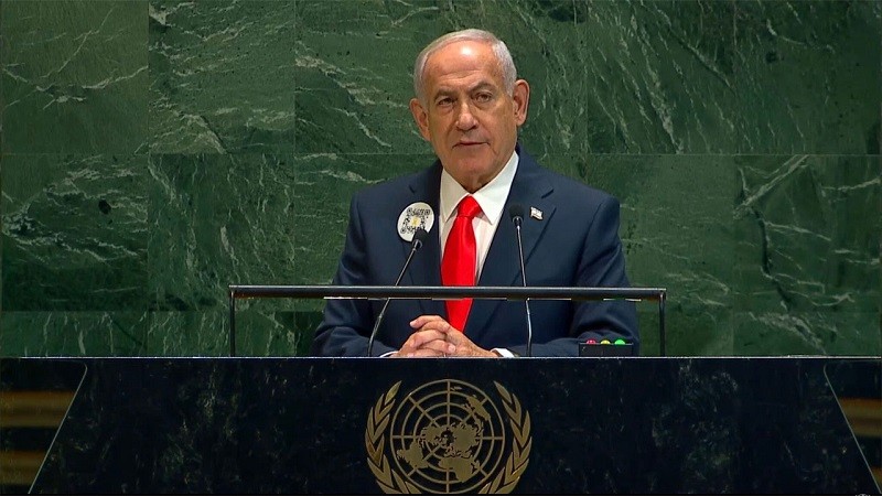জাতিসংঘের সাধারণ পরিষদের অধিবেশনে বক্তব্য দিচ্ছেন দখলদার ইসরায়েলের প্রধানমন্ত্রী বেঞ্জামিন নেতানিয়াহু। শুক্রবার (২৬ সেপ্টেম্বর) অধিবেশন কক্ষের পোডিয়ামে দাঁড়িয়ে নেতানিয়াহু বক্তব্য দেওয়া শুরুর সাথে সাথে বেরিয়ে যান বিশ্বের কয়েকশ কূটনীতিক।