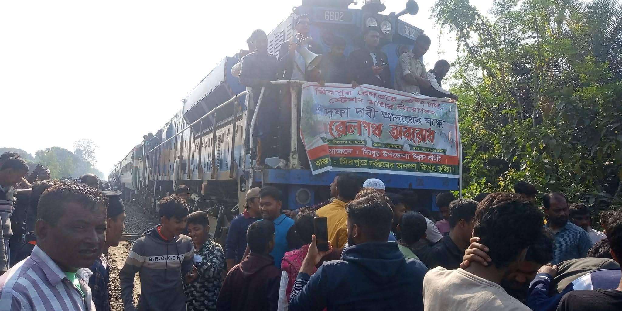 কুষ্টিয়ার মিরপুরে উপজেলা উন্নয়ন কমিটির উদ্যোগে সর্বস্তরের জনগণ রেলপথ অবরোধ করেছে। রেলস্টেশন চালু, অবকাঠামোগত উন্নয়ন, স্টেশন মাস্টার পদায়নসহ ৭দফা দাবিতে সোমবার সকাল সাড়ে ৯টা থেকে বেলা ১২টা পর্যন্ত রেলস্টেশনে অবস্থান নিয়ে এ কর্মসূচি পালন করেন। কর্মসূচি চলাকালীন উপজেলা নির্বাহী কর্মকর্তা নাজমুল ইসলাম ৭ দিনের মধ্যেই স্টেশন মাস্টার পদায়ন এবং সকল দাবি পর্যায়ক্রমে বাস্তবায়নের আশ্বাস দিলে আন্দোলনকারীরা তা প্রত্যাখ্যান করে অবরোধ চালিয়ে যায়। পরে বিএনপি মনোনীত কুষ্টিয়া-২ আসনের সংসদ সদস্য পদপ্রার্থী ব্যারিস্টার রাগীব রউফ চৌধুরী, জামায়াতে ইসলামীর মনোনীত সংসদ সদস্য পদপ্রার্থী আব্দুল গফুর বক্তব্য রাখেন। এ সময়ে উপজেলা উন্নয়ন কমিটির সভাপতি রহমত আলী রব্বান, সাধারণ সম্পাদক অধ্যাপক শাহ আক্তার মামুন, উপজেলা মুক্তিযোদ্ধা কমান্ডের সাবেক কমান্ডার নজরুল করিম, প্রেসক্লাবের সাধারণ সম্পাদক রাশেদুজ্জামান রিমনসহ বিভিন্ন সামাজিক, রাজনৈতিক ও সাংস্কৃতিক সংগঠন নেতৃবৃন্দ উপস্থিত ছিলেন। অবরোধের কারণে খুলনা-রাজশাহী ঢাকাগামী দুটি ট্রেন আটকা পড়ে। ফলে খুলনার সাথে সারাদেশের ট্রেন চলাচলে সিডিউল বিপর্যয় ঘটে। এতে হাজার হাজার যাত্রী চরম দুর্ভোগে পড়েন। বিক্ষোভকারীরা জানান,শতবর্ষী মিরপুর রেলস্টেশনটি চালু ও নির্মাণের পর থেকে উল্লেখযোগ্য কোনো সংস্কার হয়নি। অবকাঠামোর বেহাল দশা, স্টেশন মাস্টারের অভাবসহ নানা সংকটে যাত্রীসেবা ব্যাহত হচ্ছে। এ অবস্থায় স্টেশন ও আশপাশের এবং পার্শ্ববর্তী এলাকার প্রায় ১৫ লাখ মানুষ রেলসেবা থেকে বঞ্চিত হচ্ছেন। বারবার দাবি জানানো হলেও রেলওয়ে কর্তৃপক্ষ কোনো উদ্যোগ নেয়নি বলেও অভিযোগ করেন তারা। এ কর্মসূচিতে কয়েক হাজার মানুষ অংশ নেন। ২ ঘন্টা পর কর্মসূচি চলাকালীন রেলওয়ে বিভাগীয় পরিবহন কর্মকর্তা মোসাঃ হাসিনা খাতুন স্বাক্ষরিত এক পত্রে চুয়াডাঙ্গার এএসএম কামরুল হাসানকে স্টেশন মাষ্টার হিসেবে পদায়নসহ সকল দাবি মেনে নেওয়ায় আন্দোলনকারীরা অবরোধ প্রত্যাহার করে নেন। পরে ট্রেন চলাচল স্বাভাবিক হয়।