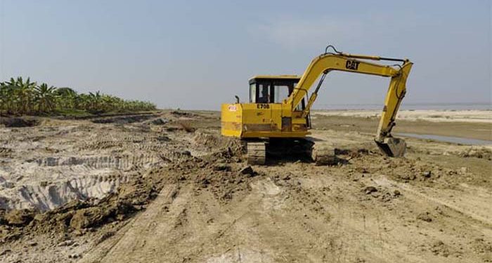 ‘বালু মহাল ও মাটি ব্যবস্থাপনা আইন ২০১০’ অনুযায়ী নদী থেকে অবৈধভাবে মাটি ও বালু কাটা নিষিদ্ধ। তবে এই আইনকে বৃদ্ধাঙ্গলি দেখিয়ে এক যুগেরও অধিক সময় ধরে পদ্মা নদীর মাটি ও বালু কেনাবেচা করছেন কুষ্টিয়ার কুমারখালী উপজেলার শিলাইদহ ইউনিয়নের অন্তত ১২টি ইটভাটার মালিক, শ্রমিক ও কিছু অসাধু কৃষকরা। তাঁরা ইউনিয়নের মাজগ্রাম, ছোট মাজগ্রাম ও জুড়ালপুর এলাকার কয়েক শত বিঘা জমির মাটি প্রতিবছরে কোটি কোটি টাকায় কেনাবেচা করেন। তাঁদের ভাষ্য, জমিগুলো নিজ মালিকানাধীন। নদীর কারনে বছরে একবার ফসল হয়। এতে তেমন লাভ হয়না। সেজন্য ফসল চাষ না করে মাটি ও বালু ইটভাটায় বিক্রি করা হয়। মান ভেদে প্রতিবিঘা জমি ৫০ হাজার থেকে দুই লাখ টাকায় কেনাবেচা হয়। প্রশাসন ও পরিবেশকে ম্যানেজ করেই তাঁরা প্রতিবছর এ কাজ করে চলেছেন। তবে প্রতিবছর নদীর মাটি ও বালু কাটায় হুমকিতে পড়েছে হাজার হাজার বিঘা ফসলসহ কৃষি জমি ও পরিবেশ। ভারি যানবহনে ভেঙে গেছে গ্রামীণ সড়ক। প্রকাশ্যে এমন অবৈধ কর্মযজ্ঞ চললেও প্রশাসনের কোনো তৎপরতা না থাকায় অখুশি স্থানীয় বাসিন্দা ও কৃষক। তাঁরা দ্রুত নদীর মাটি ও বালু কাটা বন্ধের দাবি জানান। আর প্রশাসনের কর্মকর্তারা বলছেন, অবৈধভাবে নদী থেকে মাটি ও বালু কাটার কোনো সুযোগ নেই। দ্রুতই অভিযান চালিয়ে ব্যবস্থা নেওয়া হবে। জানা গেছে, এক যুগ আগেও পদ্মা নদীর কোলঘেঁষে কুমারখালীর শিলাইদহ ইউনিয়নের মাজগ্রাম, ছোট মাজগ্রাম ও জুড়ালপুর এলাকার কয়েক হাজার বিঘা জমিতে বাদাম, সরিষা, মসুর, তিলসহ নানান জাতের ফসলের আবাদ করতেন কৃষকরা। কিন্তু ফসলের চেয়ে মাটি ও বালু বিক্রি অধিক লাভজনক হওয়ায় মাটি বিক্রি করছেন অনেকে। এতে কৃষি জমির পরিমাণ কমছে, নষ্ট হচ্ছে পরিবেশের ভারসাম্য। আরো জানা গেছে, শিলাইদহ ইউনিয়নে বর্তমানে ১২টি ইটভাটা রয়েছে। প্রতিটি ভাটায় প্রতিবছর ৫০ থেকে ৬০ লাখ পিস ইট তৈরি করা হয়। এই সব ইট তৈরি প্রধান কাঁচামাল মাটি ও বালু সংগ্রহ করা হয় পদ্মা নদী থেকে। এতে হুমকিতে পড়েছে হাজার হাজার বিঘা ফসলসহ কৃষি জমি ও পরিবেশ এবং গ্রামীণ সড়ক। বুধবার (১৭ ডিসেম্বর) দুপুর ১২টার দিকে সরেজমিন শিলাইদহ ইউনিয়নের মাজগ্রাম, ছোট মাজগ্রাম ও জুড়ালপুর এলাকায় গিয়ে দেখা যায়, পদ্মা নদীর পানি শুকিয়ে বিস্তীর্ণ চর জেগেছে। সেখানে সরিষা, মসুর, মটর, পেঁয়াজসহ বিভিন্ন ফসলের আবাদ করা হয়েছে। এসব ফসলের পাশাপাশি অন্তত ৬টি ভেকু দিয়ে মাটি ও বালু কাটা হচ্ছে। বিভিন্ন যান দিয়ে মাটি ও বাল এসবিসি, এনএসবি, মাস্ট্রার্স ব্রিকসসহ বিভিন্ন ভাটায় নেওয়া হচ্ছে। উঠে গেছে সড়কের কার্পেটিং। এ সময় সাংবাদিকদের দেখে ভেকু রেখে মাটি ও বালু কাটা বন্ধ করে দ্রুত সটকে পড়েন চালক ও শ্রমিকরা। এ সময় নাম প্রকাশ না করা শর্তে এক কষক